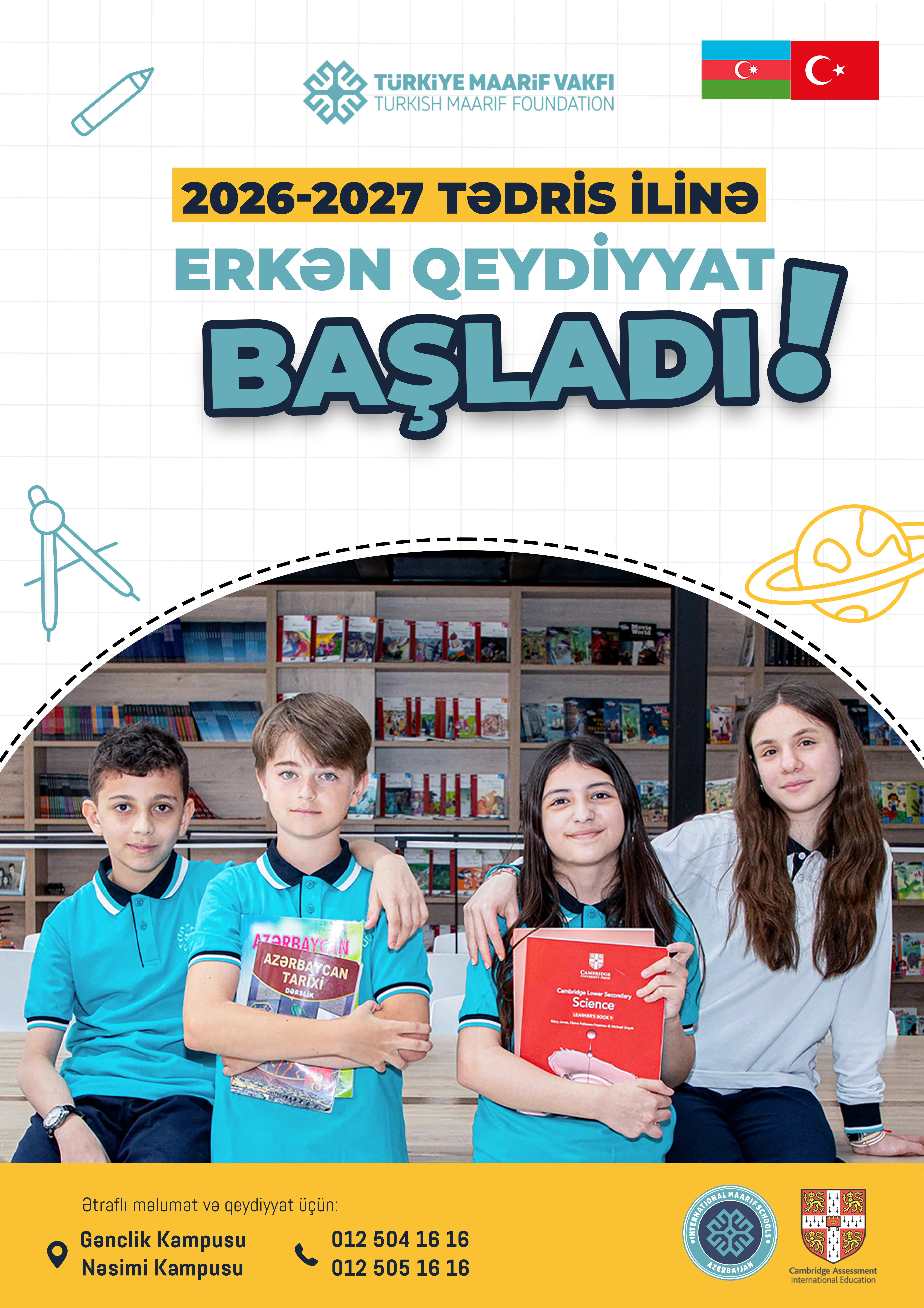 💫2026-2027-ci tədris ili üçün Nəsimi (İngilis dili əsaslı Azərbaycan bölməsi) və Gənclik (Beynəlxalq "Cambridge" proqramlı İngilis bölməsi) kampuslarımıza qeydiyyat başladı!